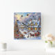 This festive and heartwarming Christmas scene is a beautiful representation of the holiday season. A charming village is nestled in a snowy landscape, with twinkling lights and decorated homes creating a magical atmosphere. Santa Claus is making his rounds in his sleigh, drawn by reindeer, while children eagerly await his arrival. This enchanting image is perfect for capturing the spirit of Christmas and adding a touch of holiday cheer to your home.