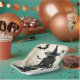 These paper plates are a delightful blend of whimsy and charm, perfect for celebrating the spooky season. These paper plates feature an enchanting image of a witch, complete with a pointed hat and flowing dress, standing against a backdrop reminiscent of aged parchment. Above the witch, a group of bats takes flight, adding to the Halloween ambiance. Perfect for those who enjoy traditional Halloween motifs with a touch of elegance and whimsy, these plates are a fun addition to your Halloween theme parties or decor. Their playful yet sophisticated style will be enjoyed by those who love to celebrate Halloween with style and charm.