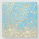 Enchanting Mandala with Gold Stars on Turquoise Stone Coaster