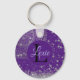Enchanting Mandala with Silver Stars on Purple Key Ring
