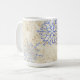 Start your day with a touch of elegance and winter magic! This beautifully coffee mug features a mesmerising design of intricate blue and purple snowflakes, delicately scattered across a textured golden background. The rich golden hue provides a warm and luxurious backdrop, while the cool snowflakes create a striking contrast that captures the serenity of a snowy winter night