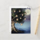 Enchanting Tree with Lights and Full Moon Beach Postcard
