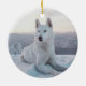 Enchanting White Husky Dog in the snow Ceramic Tree Decoration