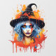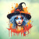 Step into the magical world of the "Enchanting Witch's Colourful Spell." This captivating design features a young and alluring witch, her cloak adorned with vibrant, cascading colours that meld into dazzling splashes and bursts. With her captivating presence and the mystical swirls of colour that envelop her, this enchantress is a true work of art.