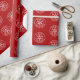 This wrapping paper features a simple geometric snowflake within white circles with Merry Christmas between the inner and outer circles on a deep red background. Featuring original art from Dogwood & Thistle.