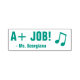This inspirational rubber stamp design features the encouraging message "A+ JOB!" and a personalised educator name. It also features a decorative beamed eighth notes. It could be used by a teacher, educator, or tutor when marking assignments, to acknowledge that the student has done a great job.