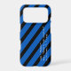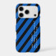 A short, personalised message of encouragement in Python programming language and stripes provide a tech, fashion forward design while protecting your phone. The design's background consists of blue and black diagonal stripes. The custom message is in white text. The font, colours, and location of the text may be changed by using the Edit Design option.
