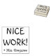 This fun rubber stamp design features the motivating message "NICE WORK!" and a customised teacher name. It could be used by a teacher, educator, or tutor when marking assignments, to indicate that a student has done well.