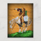 An Indian and his stallion are weary at the end of their journey. Stained glass rendition of the end of a long trail.