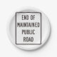 A road sign that says end of maintained public road. This design looks really effective on these Paper Plates