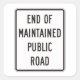 A road sign that says end of maintained public road. This design looks really effective on these Stickers