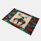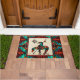 This is a Unique "One of a Kind" End Of The Trail Doormat! It Features a Native American End Of The Trail Indian and Horse on a Tan Sandstone Background...Surrounded by a Border in Turquoise, Orange & Black!