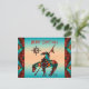 Personalise this "One of a Kind" End Of The Trail Christmas Postcard! It Features a Native American End Of The Trail Indian and Horse on a Turquoise and Orange Sunset Background...Surrounded by a Turquoise, Orange and Black Border!
