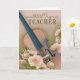 A refined End-of-Year Thank-You card created especially for a Violin Music Teacher, featuring a beautifully rendered violin placed among soft cream-blush flowers, including gerbera daisies, ranunculus, and delicate buds. The gentle pastel background enhances the musical theme, expressing harmony, talent, and the beauty of learning through sound.