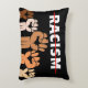 Social justice themed accent pillow features redlined RACISM text with multi shade raised fists of protest.