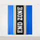 This sporty, athletic design features bold END ZONE text inside a highlighted wide black stripe with double white and yellow racing stripes against bright blue background stripes. The text in this design can be personalised.