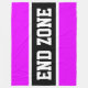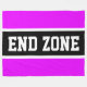 This sporty football design features bold END ZONE text inside a wide black centre racing stripe highlighted in white against bright pink outer stripes. The text can be personalised.