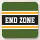 This sporty, football design features athletic END ZONE text inside a highlighted wide black stripe with white and yellow pinstripes against forest green outer stripes. The text and colours in this design can be personalised.
