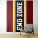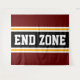 This sporty, athletic design features bold END ZONE text inside a highlighted wide black stripe with double white and yellow racing stripes against deep red outer stripes. The text in this design can be personalised.