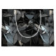 Overlapping 3D panels create a inter-dimensional vibe, in black and white.