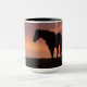 A lone stallion stands atop a ridge as the sun sets on McCullough Peaks.