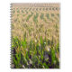 Spiral notebook featuring rows of corn growing as far as the eye can see on a farm.