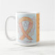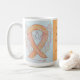 Endometrial Cancer uses a peach awareness ribbon to show support for its awareness. This custom mug features peach awareness ribbon guardian angel art paintings with the message "I Hope and Support Endometrial Cancer Awareness!" The custom peach awareness guardian angel ribbon art picture coffee cups or mugs can be customised with personalised messages to make great cause mugs for awareness fundraisers, awareness cup gifts, or other special events or cause support occasions. Make your own customised words for a personal message of hope and support to share!