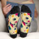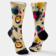 Add a burst of energy to your style with these abstract socks, featuring vibrant yellow, pink, and navy accents. The design showcases bold circular patterns, geometric shapes, and dynamic brushstrokes on a cream background. Perfect for creative individuals and trendsetters, these socks bring a unique and modern artistic touch to any outfit.