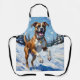 Energetic Boxer Dog Leaping in Winter Snow Fun Apron
