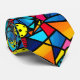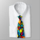 This necktie features a seamless pickleball pattern with a vibrant array of geometric shapes, predominantly triangles, creating a captivating visual. The triangles form the foundation of the pattern, creating an energetic grid-like backdrop. The lively colours include bright shades of green and blue, representing the pickleball court and the sky. The bold black borders provide a sharp contrast, reinforcing the structure of the design.