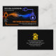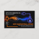 A creative electrical circuit board draws power from your prestigious name and job title at the top. An electrical lightning zaps the bulb that highlights the business name and contact details near the base. To the left of this, is a slogan caption to publicise your business ; Change the caption remarks "call me for a free quotation" to suit your own service needs.