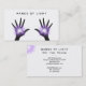 *~* Energy Enhanced Esoteric Simple HEALING ENERGY HANDS MYSTICAL Business Card: PURPLE LAVENDER ENERGY RAYS and BURSTS and two BLACK SILHOUETTE HANDS signifying the work of HEALERS that use their HANDS for HEALING. There are also tiny rays in the LAVENDER ENERGY RAYS BURSTS and formed BALL.