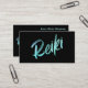 * Reiki Master Teacher or Reiki Practitioner bright turquoise on black vertical business card.*