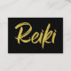 * EU Euro Size - Reiki Master or Reiki Practitioner Gold Glitter word REIKI on black background business card.*