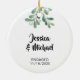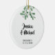 Celebrate your engagement this Christmas with this elegant Christmas Tree Ornament. It is decorated with watercolor mistletoe.