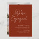 terracotta simple lettering design and a personalised image. You can personalise the text, image and colour detail on this engagement party invite template.
