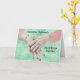 Engagement announcement with a woman's hand wearing a faux diamond engagement ring. All the words on the card can be changed. Thanks to Pixabay for some of the elements in the design.