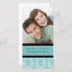 Engagement announcement Photo Card in elegant turquoise blue, black and white classic floral damask pattern, customisable with your names, the perfect way to announce your engagement to friends and family. Pattern available in a wide range of matching wedding products.
