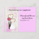 This engagement announcement has a stylised bride in a wedding gown and groom in a tuxedo with pink flower adorned, entwined gold hearts in background.and lace look trim. Pink themed. You can alter the text to personalise. On the front is a Bible verse from the Song of Solomon that says "I haa. On the back is your message and your names.