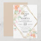 WEDDING ENGAGEMENT INVITATION | Watercolor flowers in pastel shades of coral, blush pink, yellow, cream and delicate green leaves cascade around a gold geometric multi faceted diamond style frame. Reverse is a complimentary coordinated colour. Customise text, font style, colour and size. We created this template is to make it easy for you to personalise with your own information. This is part of a complete Wedding Stationery Suite with matching wedding, baby shower and other event stationery designed by WhimsicalArtwork™.