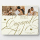 Elegant classic faux gold romantic calligraphy script engaged script couple 3 photo collage, name and engagement date personalised cream ivory keepsake plaque.