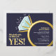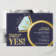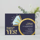 Invite your friends and family to a engagement party or engagement dinner celebration with these dark blue, gold foil, aqua and white, graphic diamond engagement ring invitations. Personalised with your own celebration words, date, venue and a photo of your couple on the back. Other matching items available. Original graphic art and design by www.mylittleeden.com on zazzle.