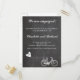 Modern Engagement party invitation on a cute chalkboard background. It features a romantic bike with heart balloon with your custom initials. Find more options in our shop!