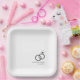A fun and unique script-lettered paper-plates tailored specifically to your future engagement dinner or party. It features a set of engagement rings. Underneath this and above it are the names of the bride and groom and the engagement or wedding date.