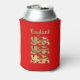 This contemporary design inspired by the Great Seal of King Richard the Lionheart features three identical gold lions aligned on top of each other on a red background.