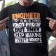 Funny Engineer Sayings "Engineer I Try To Make Things Idiot Proof But They Keep Making Better Idiots". Grab this Funny Engineer design as a funny gifts for an awesome mum, dad or friend.
