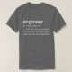 Engineer is one who solves problems that you did not know exist in ways you do not understand. This is for the shirt for the engineer that has a little fun with how complicated their calling can be.