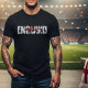 Show your England pride with this bold soccer fan t-shirt featuring player silhouettes integrated into ENGLAND lettering with St. George's Cross flag accent. Perfect for the global football tournament 2026 in USA, watch parties, pub gatherings, fan zones, and supporting the Three Lions during international matches and qualifiers.