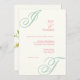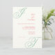 Simple minimalist design based on monogram initial soft the bride and groom. Colours of English Pear and Spring Poppy, a seafoam green and warm pink, on an ivory background. Colours are completely customisable in the design tool. Reverses to a soft watercolor floral bouquet in the colours of a spring time English garden.