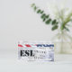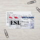 Business card for a teacher of English as a second language with part of the map of the US and the US flag as background.